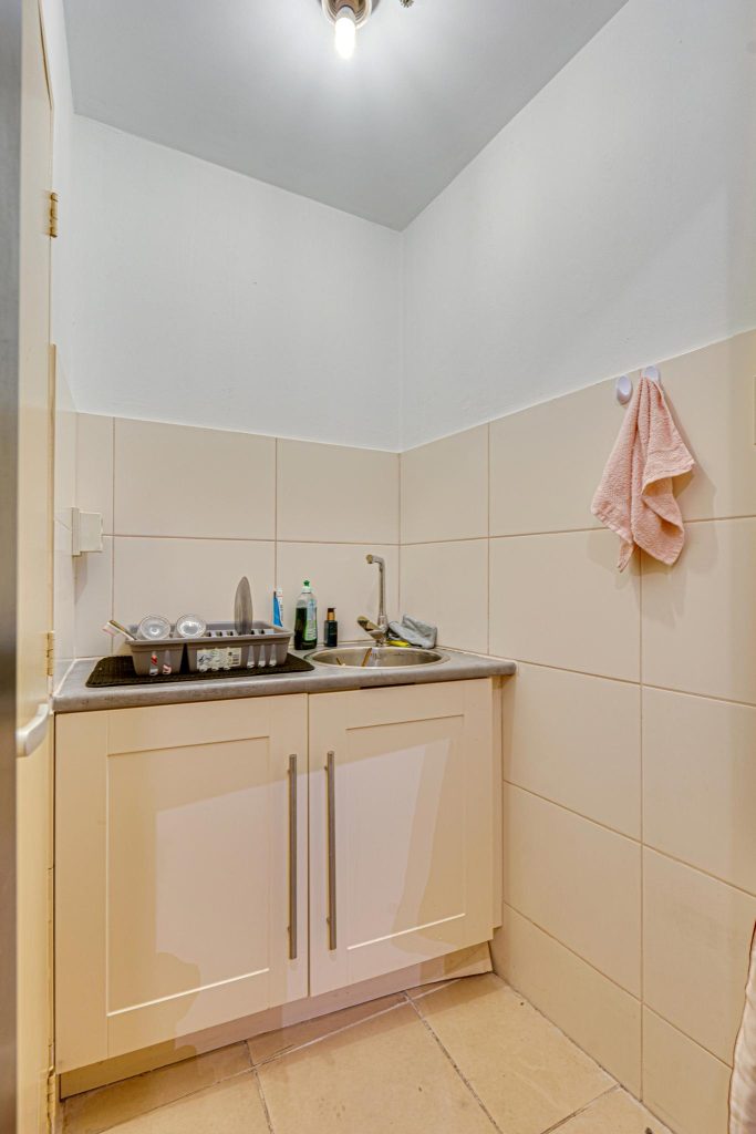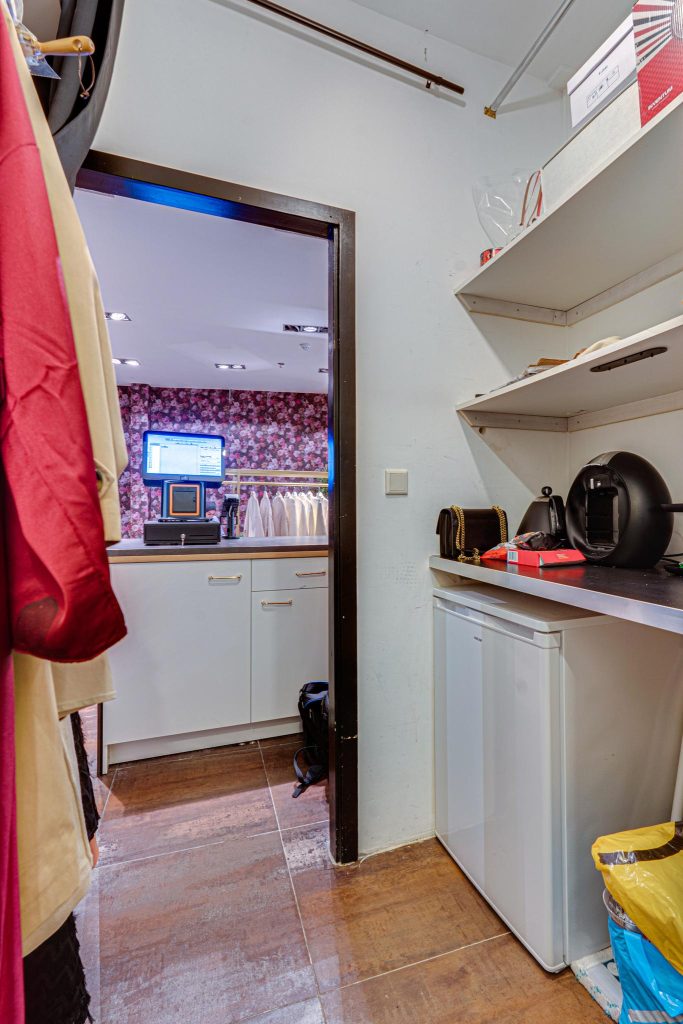 De ruimte beschikt over een luxe tegelvloer, spots verlichting, 2 kleedkamers, een keukenblok met gootsteen en een toilet met fonteintje.