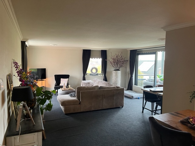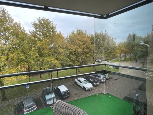 Een ruim appartement van ca 85 vierkante meter op de 3e verdieping grond met 2 slaapkamers, balkon en eigen parkeerplaats in de keldergarage.